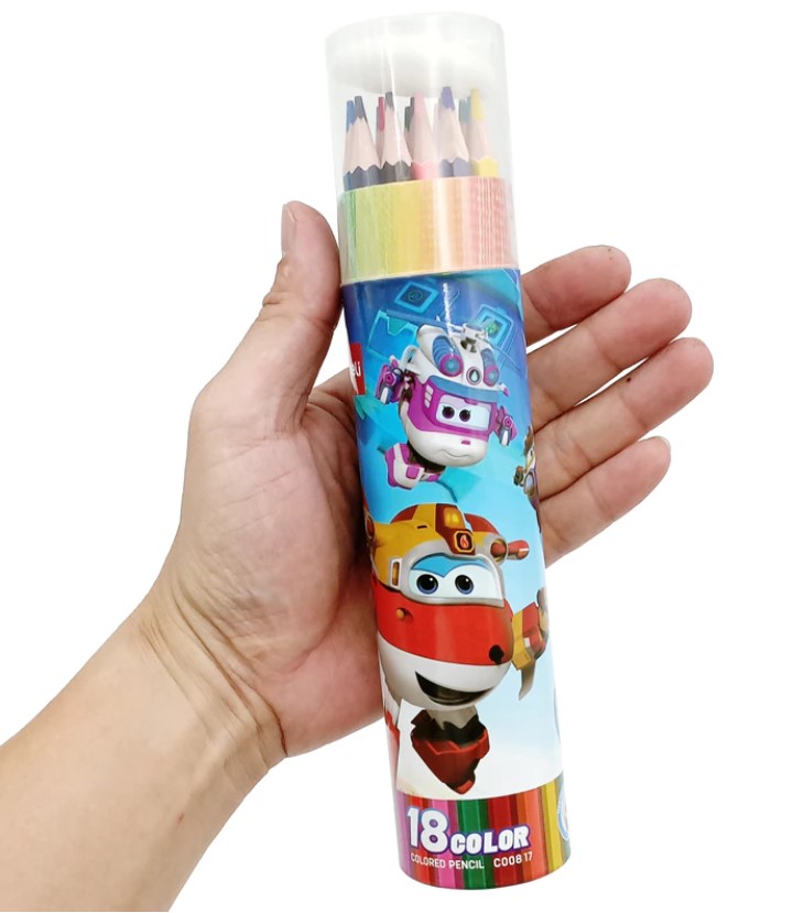 Bút chì màu 18 màu Deli EC00817 - Họa tiết Super Wings kèm gọt chì (C00817)